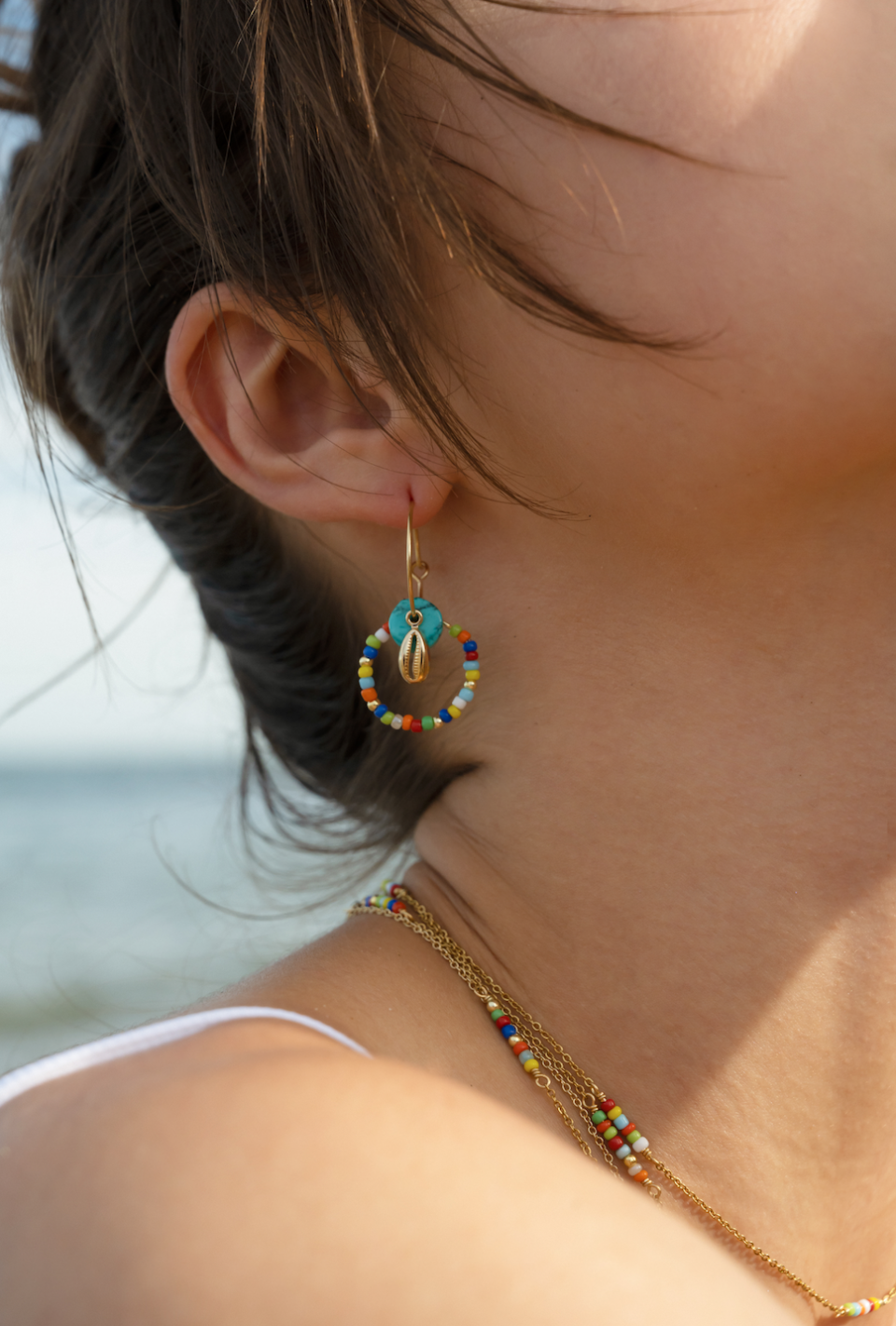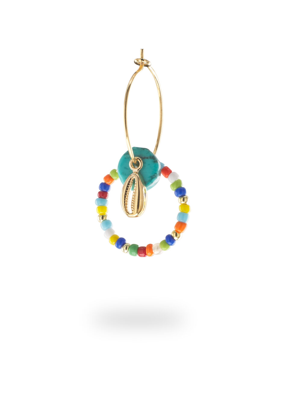 Fedina realizzata interamente con perline di vetro colorato e perline in Argento 925 con galvanica oro 18 kt, disponibile in diverse misure e pensata per essere indossata su qualsiasi dito. Leggera e versatile, si abbina perfettamente a una fede più importante, creando un contrasto giocoso e raffinato.
