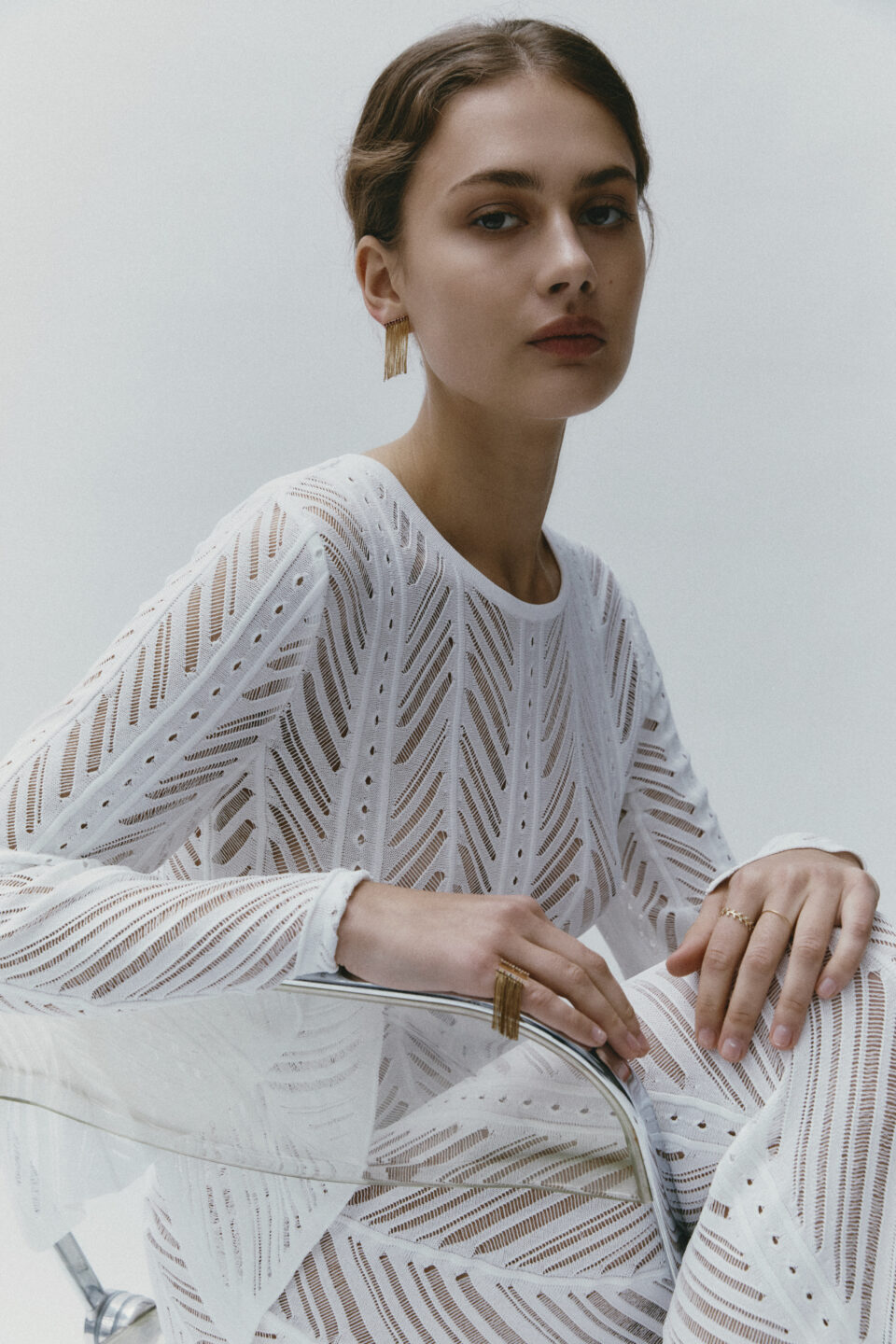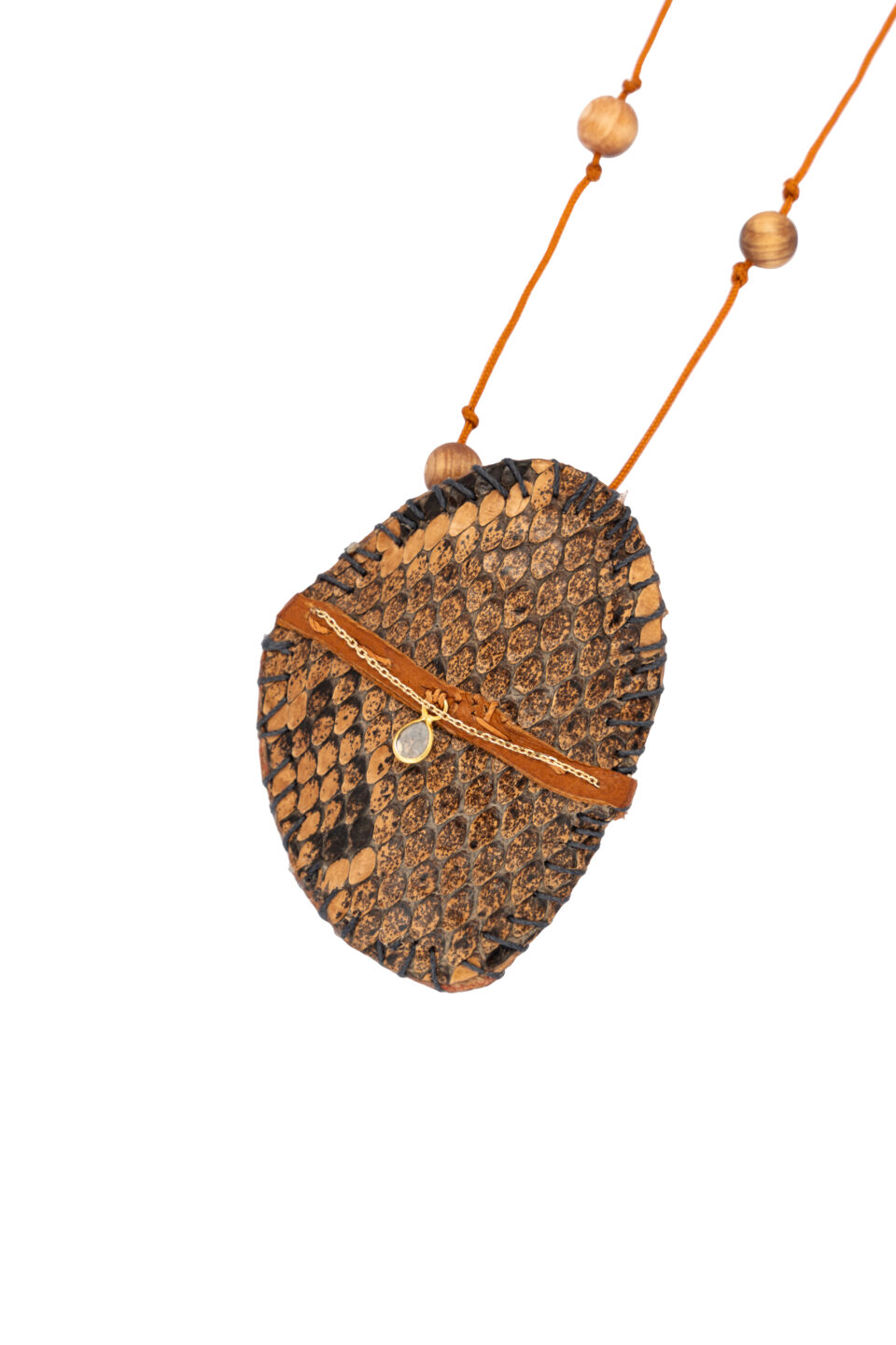 Recycled leather - 18 kt gold Venetian chain - White diamond