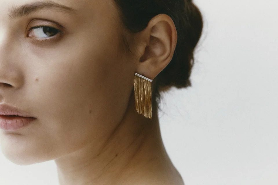 18 kt yellow gold - White diamonds ct 0.20 - Fringe length 3 cm