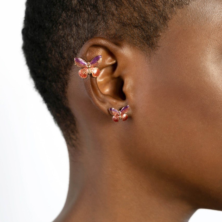 The My Butterflies collection reinterprets this enchanted world through 925 sterling silver rings and earrings with 18 kt yellow gold electroplated finish.
