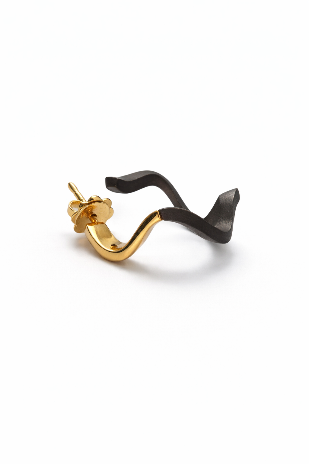 The earrings in the Onda line were born from a fluid and sculptural vision, inspired by the architecture of Zaha Hadid and the natural movement of water. Their shape follows a continuous, soft, and dynamic line, transforming the architectural gesture into a wearable symbol.
