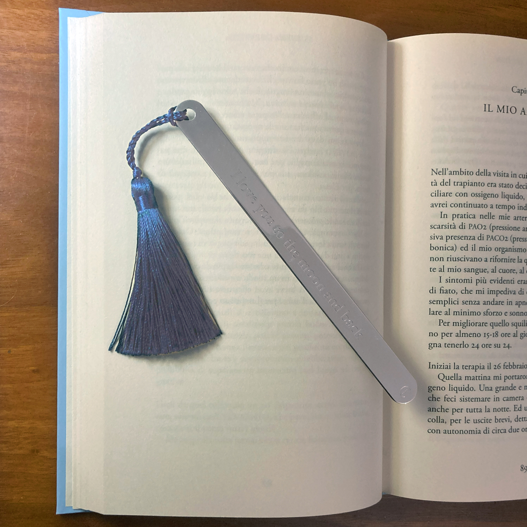 The delicate and intimate engraving"Always with you, I love you"transforms this object into a message to carry with you between the pages: a phrase that conveys affection, closeness, and constant presence—perfect for accompanying someone in their quiet moments and reading journeys.