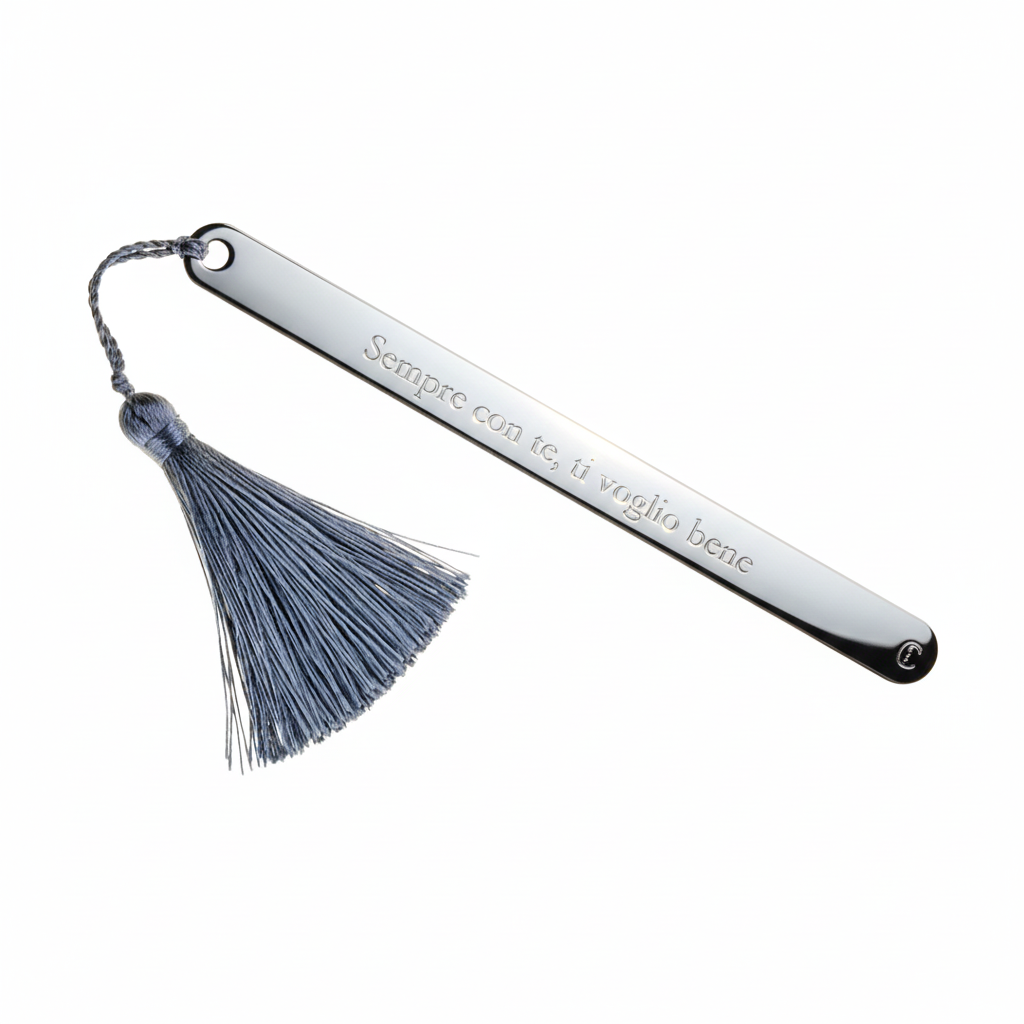 Bookmark made of 100% nickel-free brass, embellished with a refined thick polished 925 silver plating, designed to guarantee shine, durability, and a feeling of authentic quality to the touch.