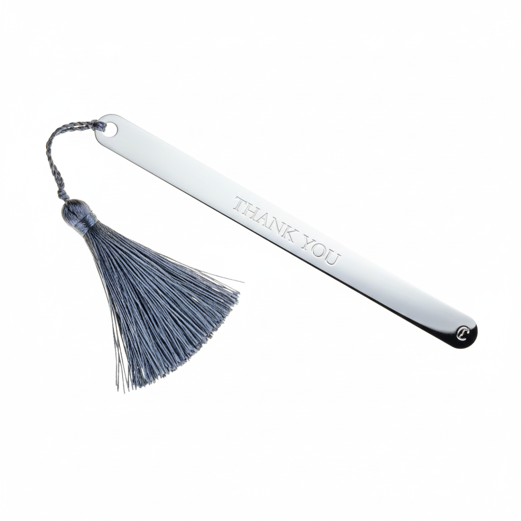 Bookmark made of 100% nickel-free brass, embellished with a refined thick polished 925 silver plating, designed to guarantee shine, durability, and a feeling of authentic quality to the touch.