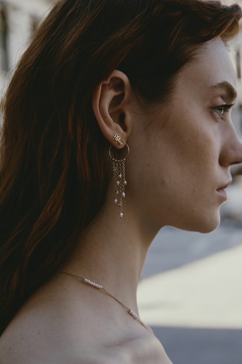 Questa coppia di orecchini in oro giallo 9 kt celebra la purezza della semplicità: una perla di fiume naturale, luminosa e delicata, diventa protagonista assoluta. La chiusura a farfallina assicura comfort e praticità, mentre il design lineare lascia parlare la bellezza intramontabile della perla.