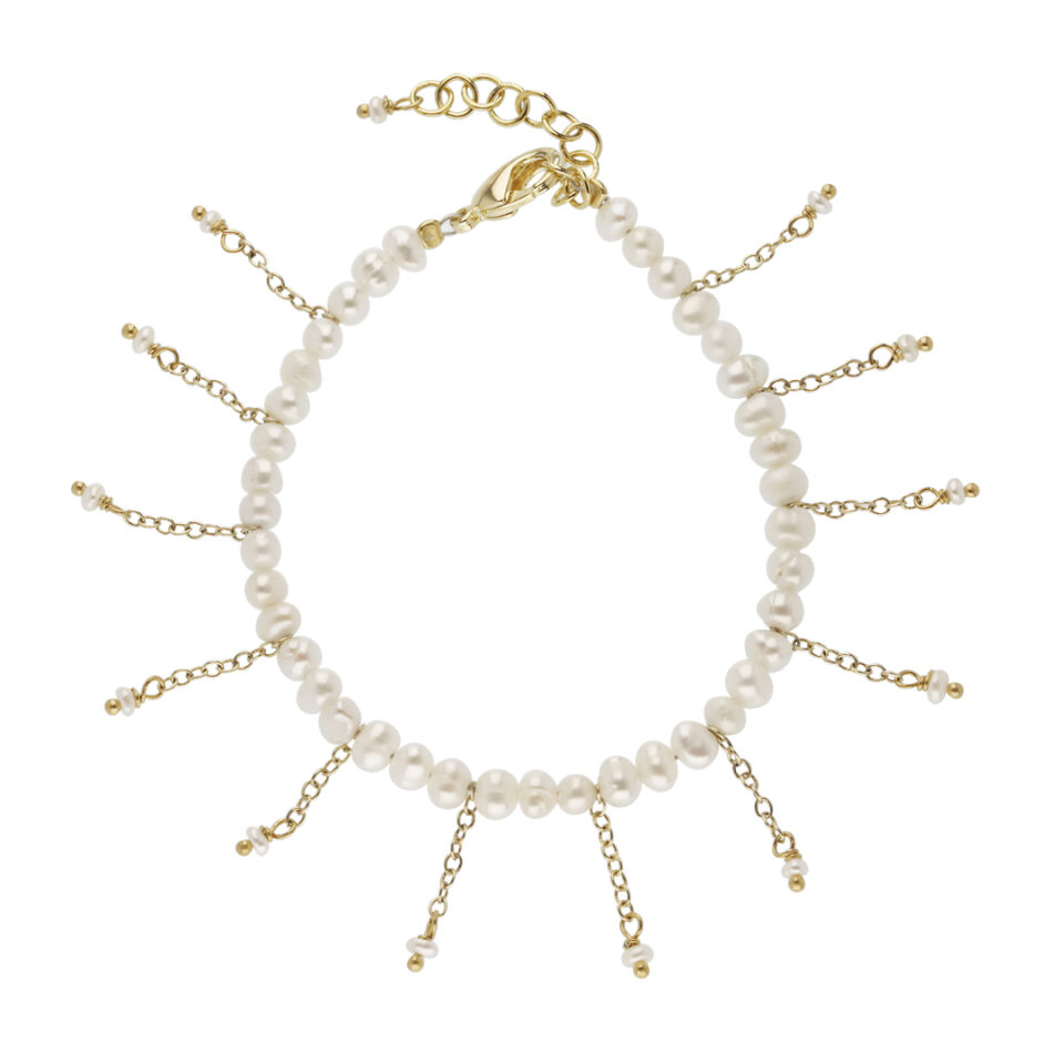Questo retro di orecchino in oro giallo 9 kt si apre in tre sottili catene di lunghezze diverse (4, 5 e 6,5 cm), pensate per creare un’armonia dinamica a ogni passo. Le due più corte terminano con micro perle di fiume, simboli di purezza e delicatezza, mentre la catena più lunga si arricchisce di una medaglietta dorata accompagnata da una perla, per un dettaglio ricercato e luminoso.