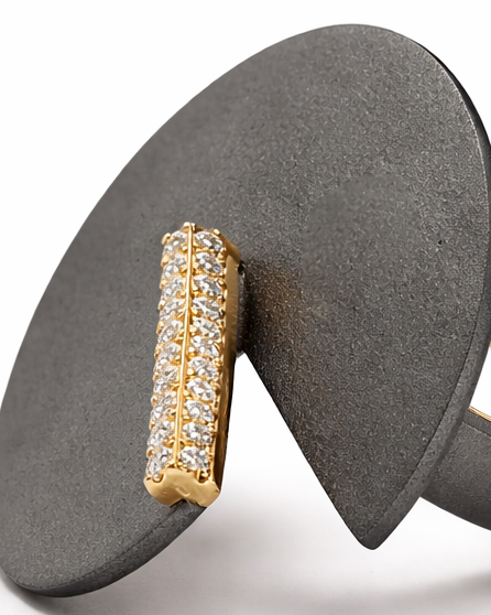 The 18kt yellow gold interior is designed to ensure maximum comfort and a perfect fit on the finger on which you wish to wear the jewelry. The upper part features a circular titanium disc with an iconic split that recalls the expression of Pac-Man: crossed by an 18kt yellow gold bar, it allows for the setting of natural brilliant-cut white diamonds.