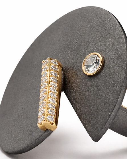 The 18kt yellow gold interior is designed to ensure maximum comfort and a perfect fit on the finger on which you wish to wear the jewelry. The upper part features a circular titanium disc with an iconic split that recalls the expression of Pac-Man: crossed by an 18kt yellow gold bar, it allows for the setting of natural brilliant-cut white diamonds.