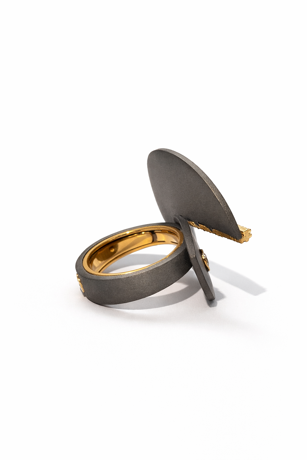 Pac-Man ring with diamond eye made of titanium.