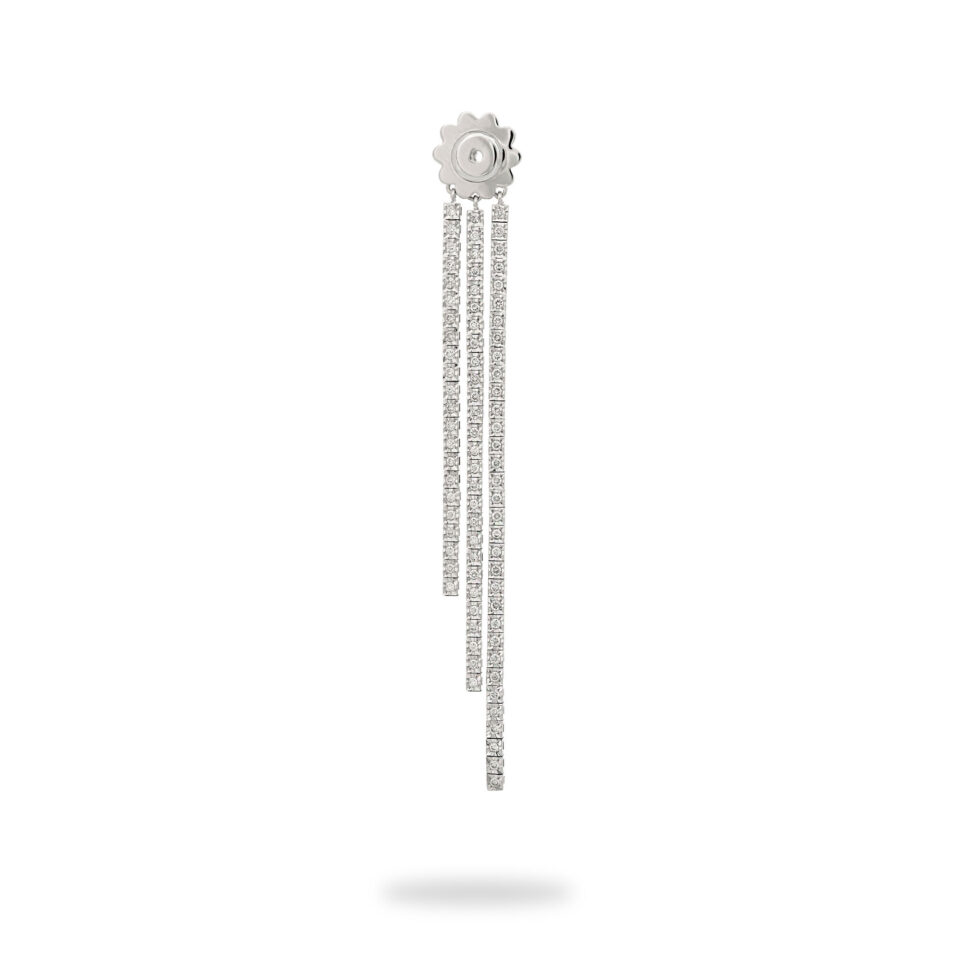 Elemento retro singolo in oro bianco 18 kt, composto da due “desideri” in diamanti taglio brillante di 3 cm.