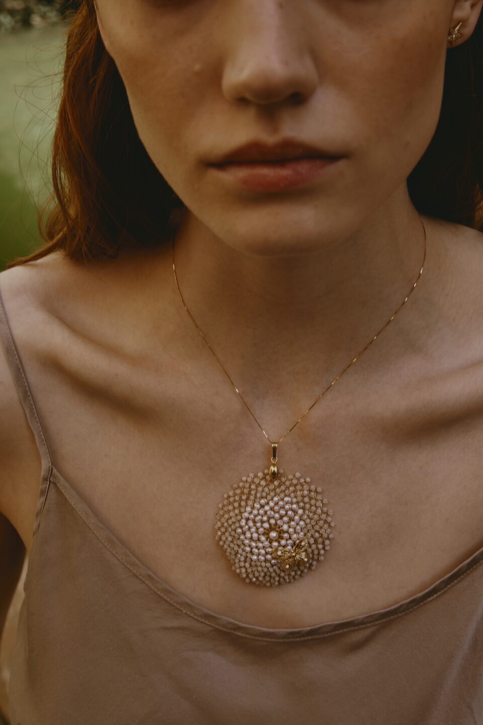 Argento 925 con finitura galvanica in Oro 18 kt (3 micron) – Perline di vetro colorato – Ciondolo Vespa Verde