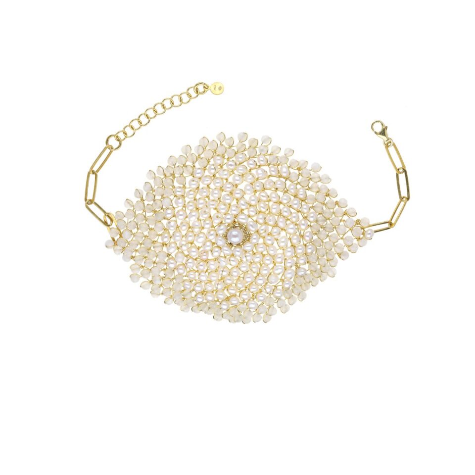 Argento 925 con finitura galvanica in oro giallo 18 kt – Perle di fiume – Pietra di luna