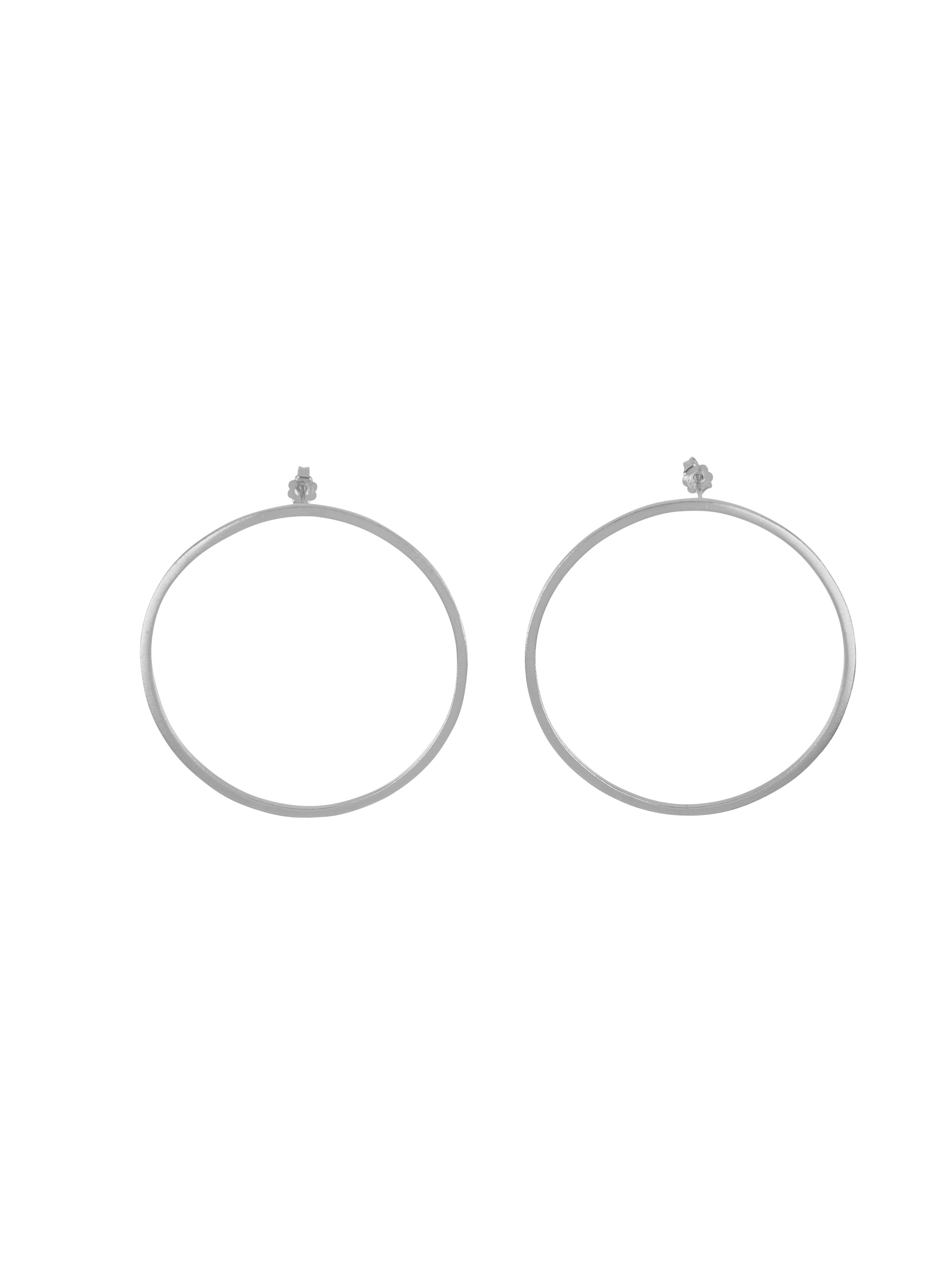 Orecchini in argento 925 rodiato, con galvanica oro giallo 18kt o con galvanica oro rosa 18kt del diametro di 55mm.