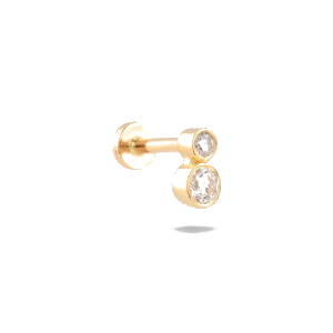 Questo piercing, con la sua forma delicatamente arcuata, presenta cinque diamanti incastonati come foglie preziose, uno sopra l’altro, che sembrano danzare e brillare come le luci del nord.