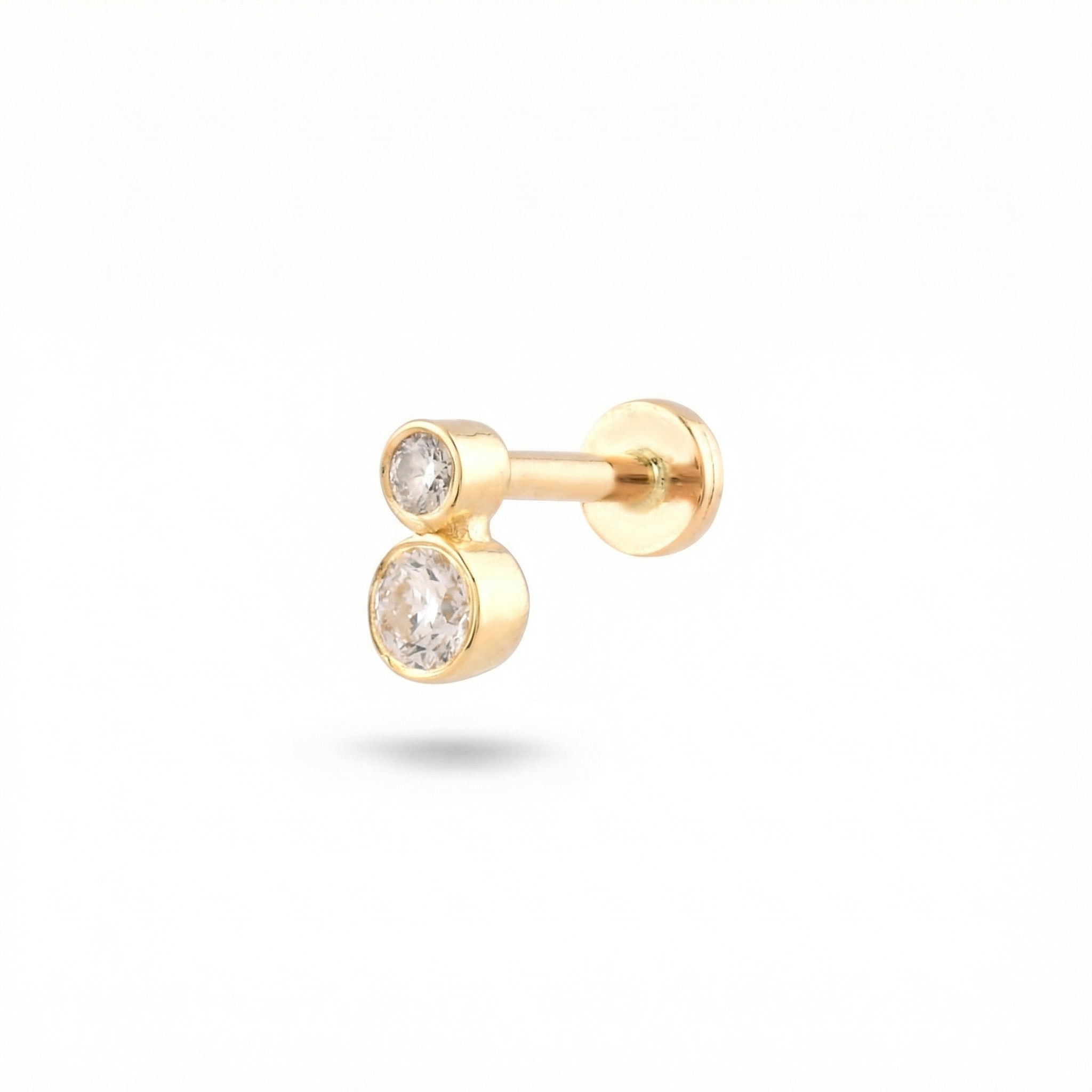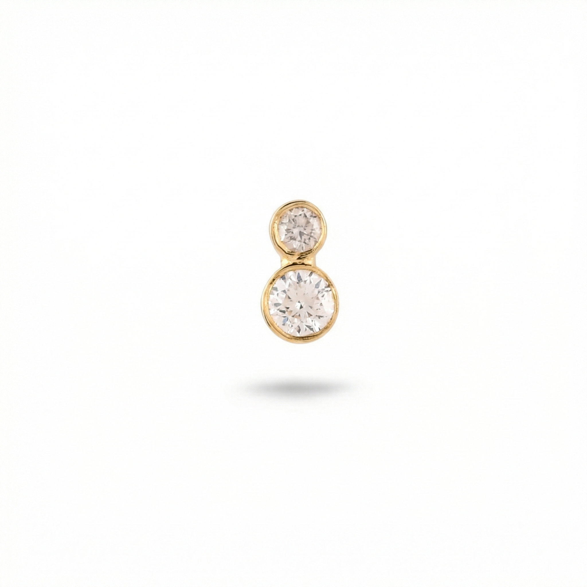 Questo piercing, caratterizzato da due diamanti rotondi, simboleggia l’armonia e la dualità, un’eleganza che si fa duplice e complementare.