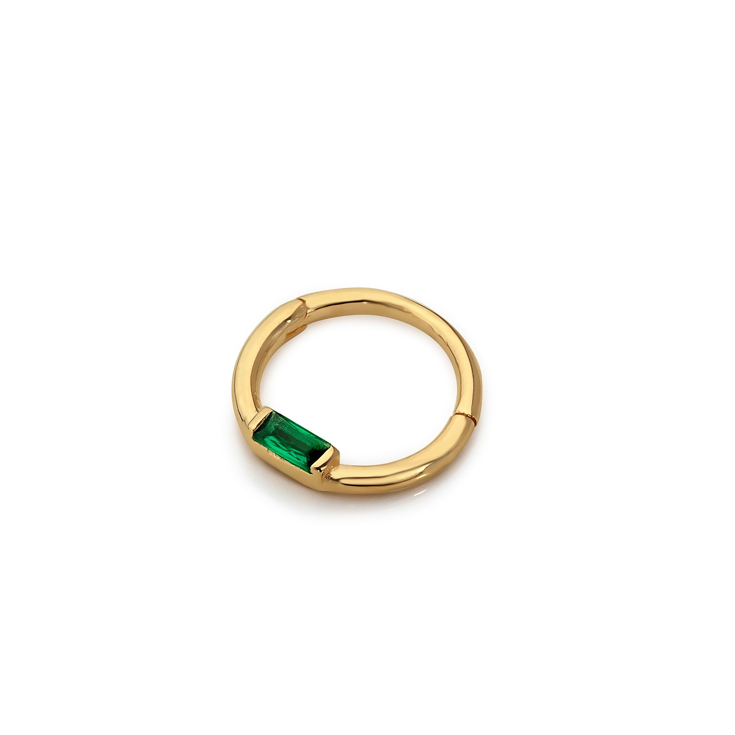 La baguette verde aggiunge un tocco vibrante ma raffinato, creando un contrasto sottile con l’oro, che lo rende un pezzo perfetto da indossare ogni giorno, da solo o in combinazione.